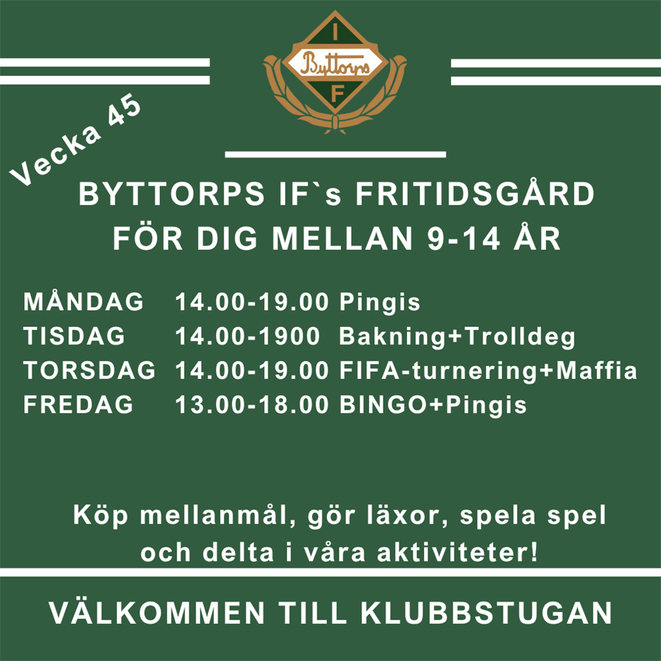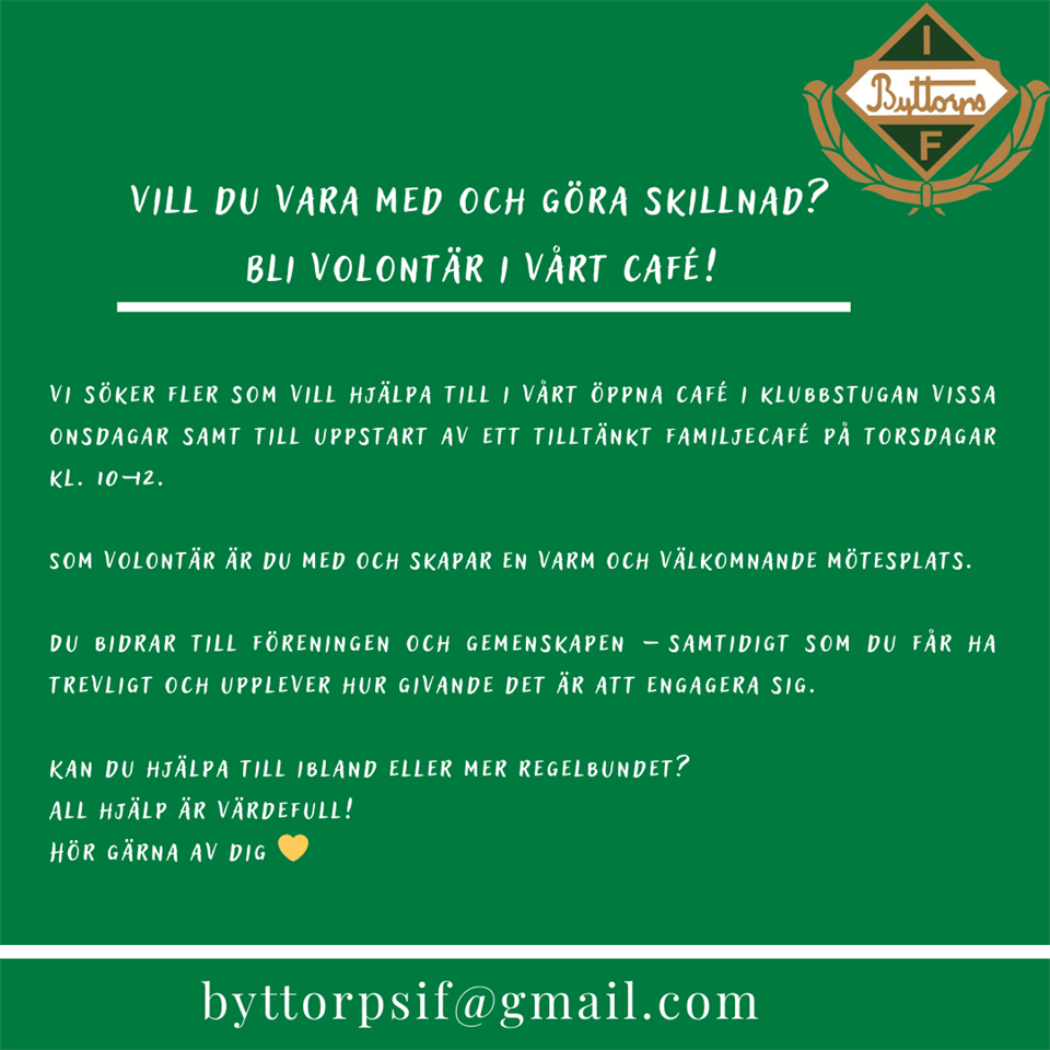 Klicka på bekräftelselänken i det mejl vi skickat dig för att börja ta emot uppdateringar från Byttorps IF.