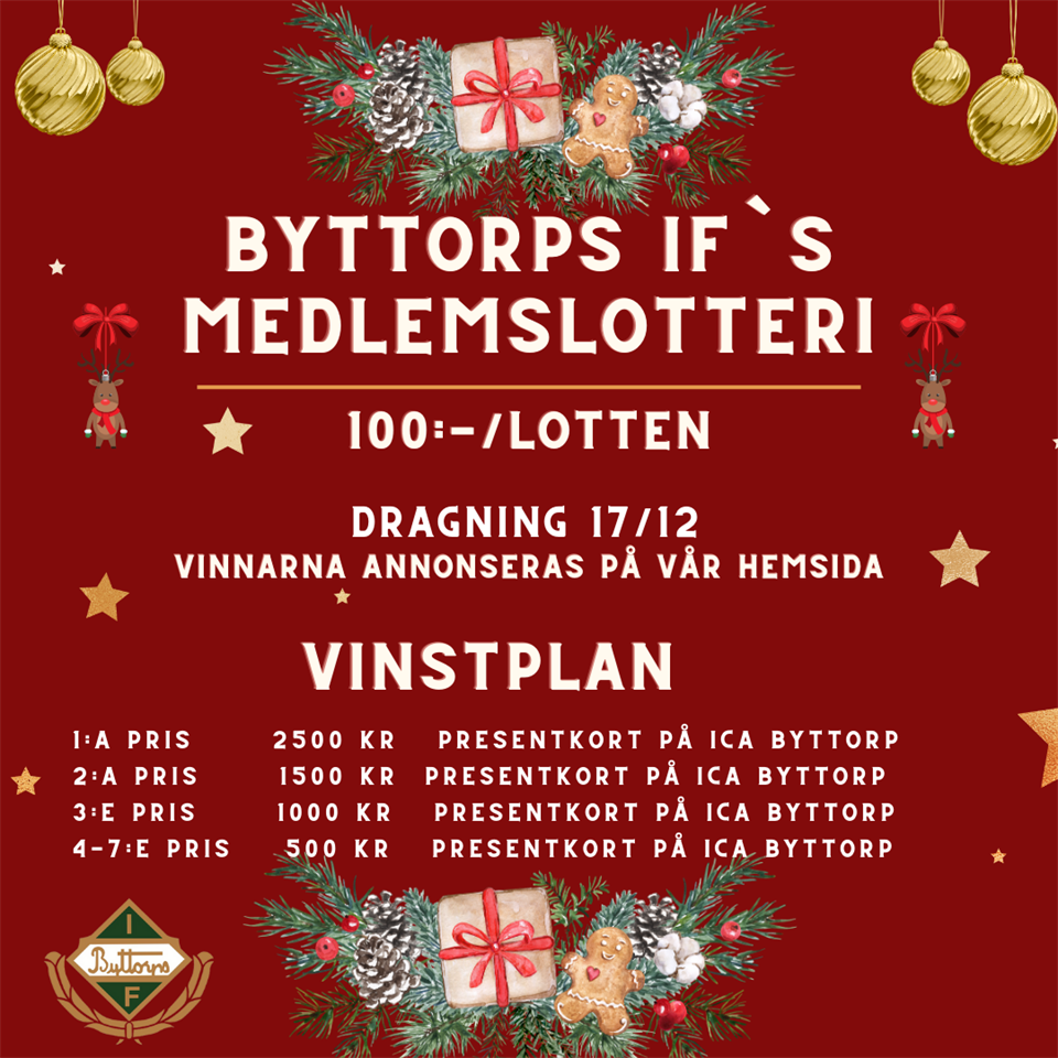 Hösten har varit intensiv och rolig med mycket aktivitet. Fotboll, handboll, bordtennis, byttorpsseniorer, gympa och mattcurling varvas med olika projekt, onsdgascafè och fritidsgård. Det har varit fullt ös i klubbstugan, på planer och i hallar, och kansliet, styrelser och ledare har haft ett högt tempo hela vägen. Nu tar kansliet lite välförtjänt julledighet. Vi har stängt till och med 6 januari och är tillbaka på kontoret igen 7 januari, redo för ett nytt spännande år. Vi önskar alla våra medlemmar, ledare och samarbetspartners en riktigt god jul och ett gott nytt år! 🎄?
